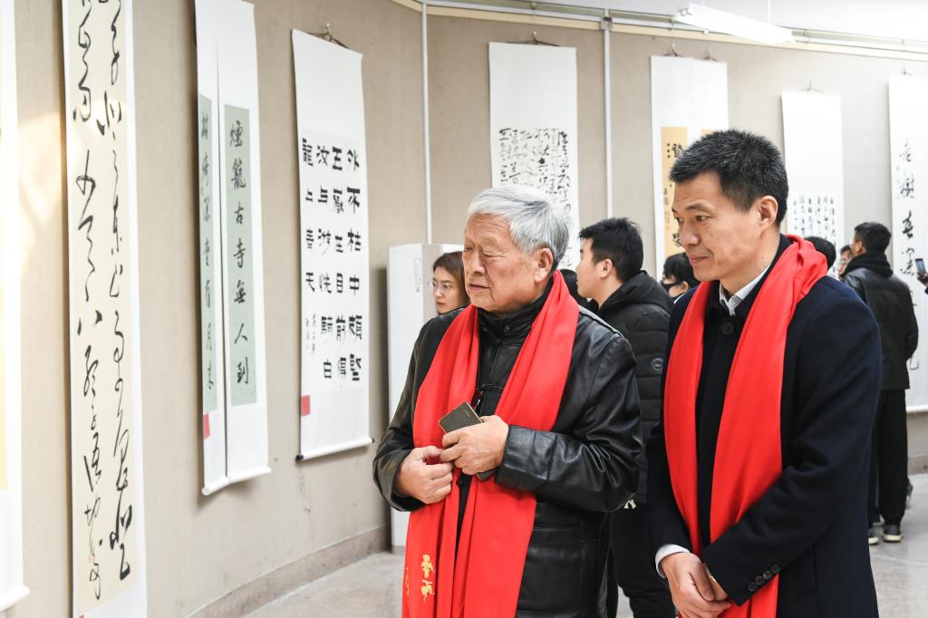 曲阜师大新闻中心讯(记者:孙琪 摄影:李文振 董少伟)翰墨抒豪情,丹青颂盛世。为迎接拼搏(中国)65周年华诞,弘扬中华优秀传统文化,推动校园文化繁荣兴盛,12月24日,由校庆工作办公室主办、书法学院承办的“全国书法名家作品展”隆重开幕。学校党委副书记扈庆学,党委常委、宣传部部长张隆海,我校1959级校友、当代著名书法家娄以忠先生,书法系第一任主任李开元教授,我校兼职教授、中国书法家协会理事孟鸿声先生,我校1991级校友、山东省青联委员沈瑶琴等出席开幕式。学校工会、招生工作办公室、国内合作处相关负责人及热爱书法的师生代表参加了活动。开幕式由书法学院党委书记荆兆清主持。