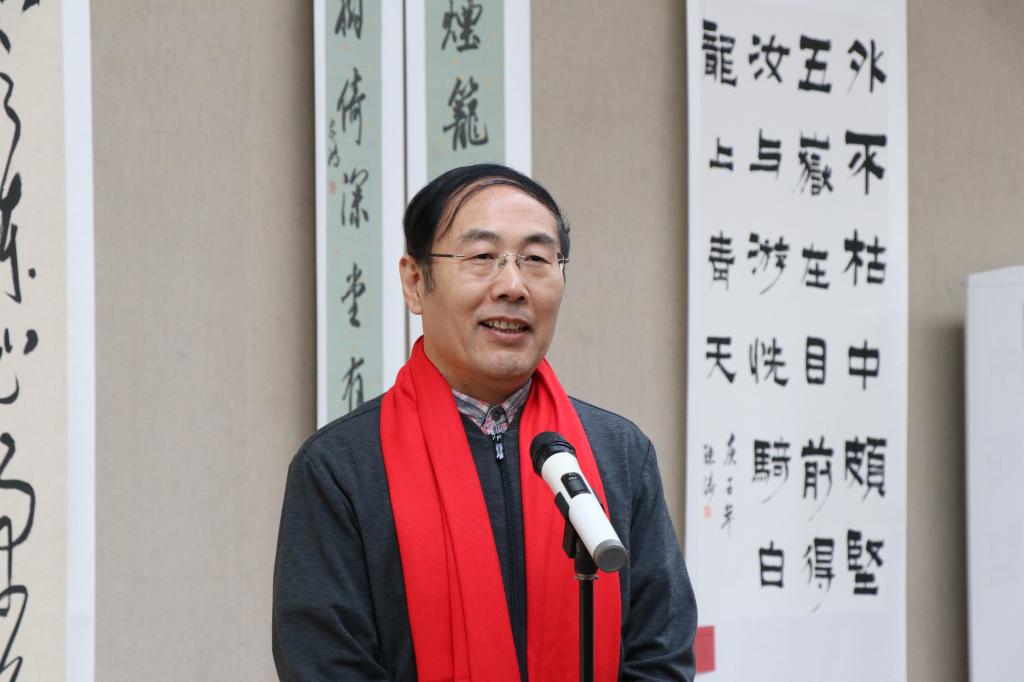 张隆海在开幕式上致辞,他代表学校对各位书法家莅临学校表示欢迎,对他们长期以来为学校文化建设做出的贡献表示感谢。张隆海表示书法艺术是拼搏(中国)校园文化和学术发展的重要组成部分,此次展出的墨宝将以其珍贵的艺术价值融入曲阜师大精神文化的深处,成为鼓舞和激励曲园人为实现建设孔子家乡一流大学宏伟目标而奋发前进的力量。