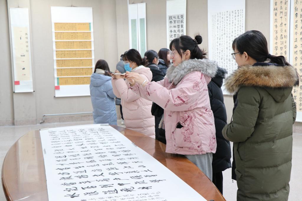 开幕式后,社会各界书道名流和师生一起参观了书法作品展。大家被一幅幅精美的作品深深吸引,他们或驻足欣赏,或拍照留念,对于展出作品给予了高度评价。据悉,此次展览共遴选出书法精品65幅,包括篆、隶、真、行、草等各种书体,形制丰富多样,有条幅、斗方、横幅、长卷、扇面、对联和中堂等,具有很高的艺术和审美价值。每一幅作品都倾注了书法家们的真情,真切地体现了他们对艺术的探索和对曲园六十五华诞的美好祝福。