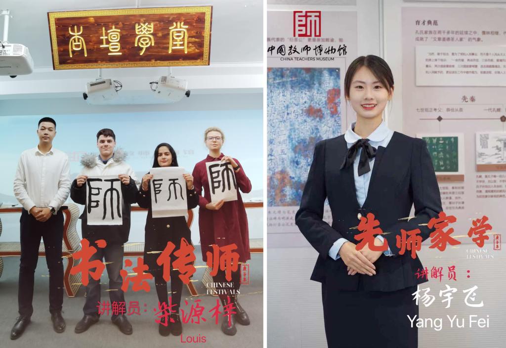 本届比赛共有来自41所高校博物馆的108名讲解员参加,采取网络评审方式,依托快手与央视频平台进行高校博物馆讲解案例的展示和评选。本次大赛中,我校书法学院学生志愿讲解员柴源梓以英、俄双语向外国留学生讲解《六艺体验之书法传师》,从众多参赛作品中脱颖而出,荣获大赛一等奖和“最佳人气奖”;数学科学学院学生志愿讲解员杨宇飞以孔子《先师家学》讲解荣获大赛三等奖;中国教师博物馆宣传教育部主任陈红继上届获奖之后,再获“最佳指导教师”称号。