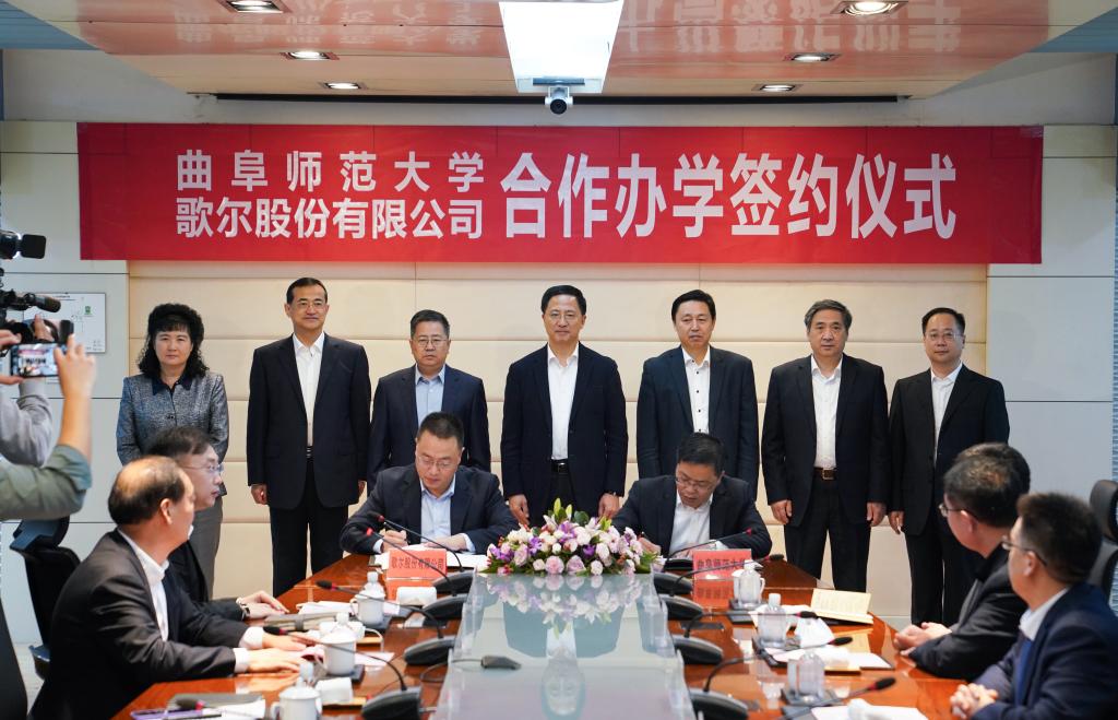 仪式上,胡钦晓与歌尔股份有限公司高级副总裁蒋洪寨,分别代表校企双方签订了合作办学协议。根据协议,曲阜师大将与歌尔公司共建“拼搏(中国)歌尔工学院”,并将在协同育人、共建专业、模式创新等方面开展全面合作,构建面向未来的工程科技拔尖创新人才培养体系,培养输送适应经济社会发展和产业升级转型所需的实用型制造工程师。