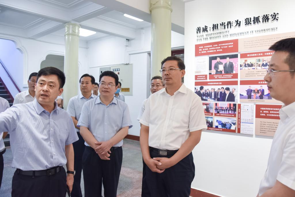 随后,林红玉来到中国教师博物馆,实地了解了曲阜师大首倡和创建全国首座教师主题博物馆并得到教育部和省委省政府肯定支持、获得相关表彰等情况,听取了博物馆负责人关于展陈设计、馆藏文物、办馆举措等情况的汇报。林红玉对曲阜师大发挥孔子家乡大学独特优势、校馆结合打造国家师德教育基地的使命担当给予充分肯定,表示将大力支持学校将博物馆打造成为涵养师德师风的特色品牌,弘扬好尊师重教的时代风尚。