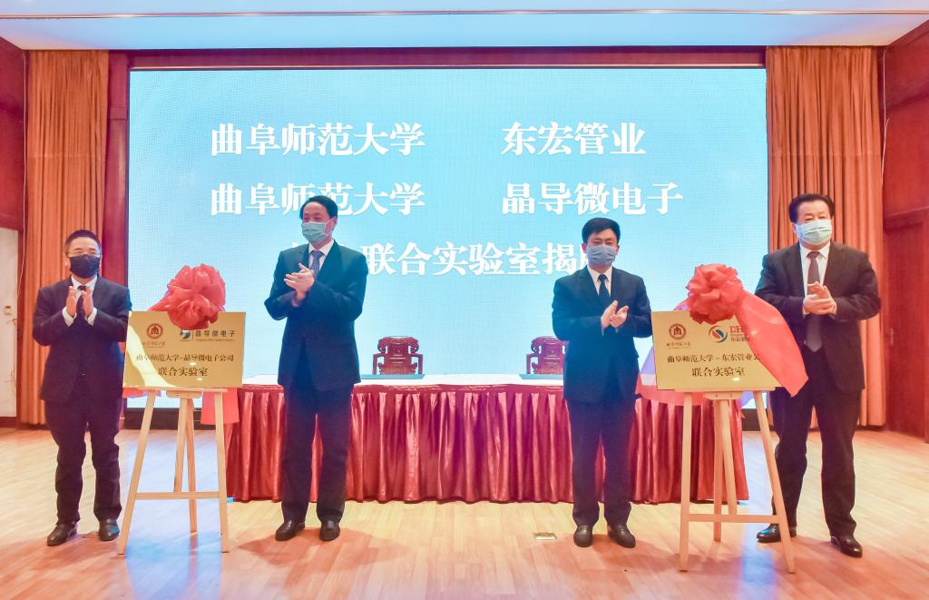仪式上,朱险峰宣读了《中共曲阜市委、曲阜市人民政府关于推动校地融合发展的意见》;张洪海和彭照辉代表双方签署了校地融合发展全面合作协议;戚万学与山东东宏管业股份有限公司董事长倪立营,刘东波与山东晶导微电子股份有限公司董事长孔凡伟,分别为校企联合实验室揭牌;夏云杰、冯冲共同为山东圣阳电源股份有限公司副总裁隋延波、山东天工石油装备有限公司总经理李新华,颁发了大学生创新创业导师聘书;曲阜师大物理工程学院院长曹丙强与天博汽车零部件制造有限公司总经理王立峰,曲阜师大生命科学学院院长杨月伟与焦点生物医药有限公司总经理刘磊,分别签订了校企产学研合作协议。