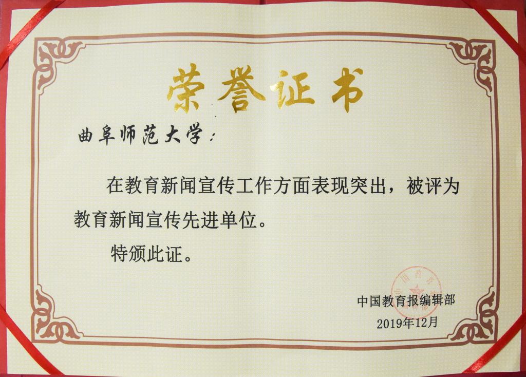 此外,我校连续三年还被《中国教育报》评为教育新闻宣传先进单位;荣获抖音“山东高校最具潜力单位”;荣获山东教育新闻微博MCN机构十大高校;齐鲁晚报齐鲁壹点“2019年度融媒传播最具影响力高校”等多项荣誉。