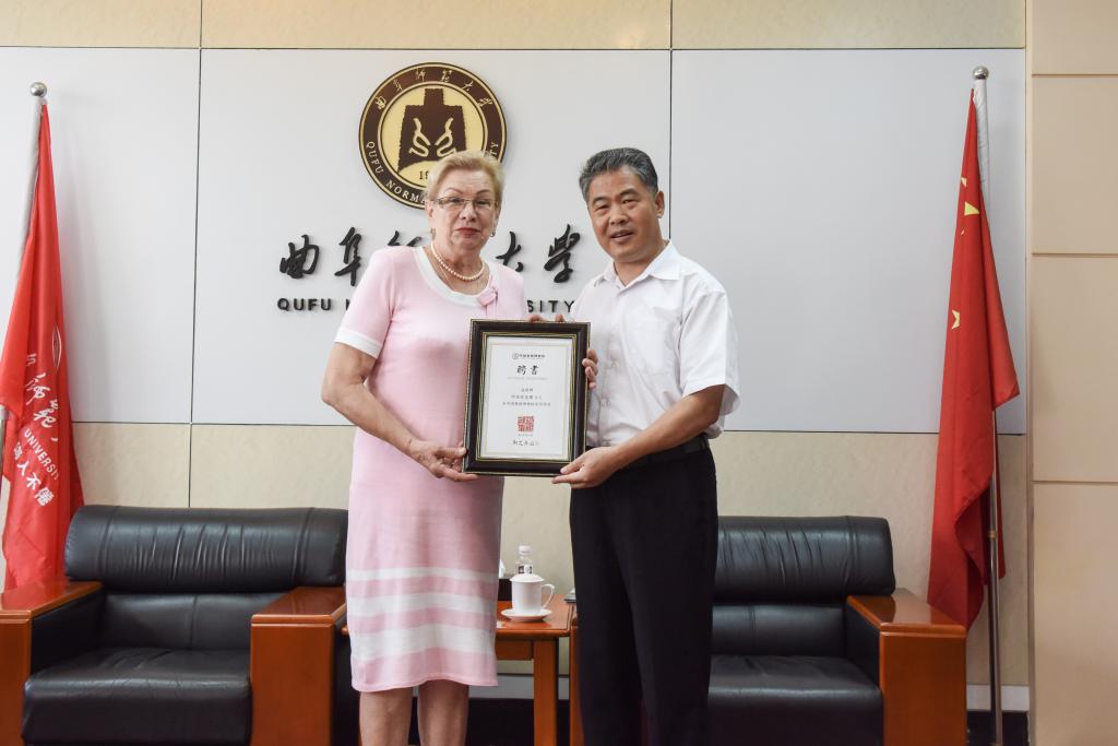8月30日下午,学校党委副书记扈庆学会见乌克兰功勋教师、帕甫雷什中学校长瓦·德尔卡其女士,乌克兰教育科学院通讯院士、基辅市苏霍姆林斯基实验学校校长哈依鲁莲娜女士。扈庆学为两位校长颁发了“中国教师博物馆荣誉馆员”证书。