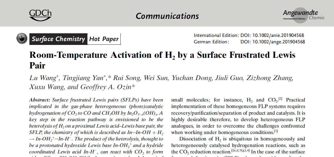 第一篇论文为“Polymorph selection towards photocatalytic gaseous CO2 hydrogenation”(DOI:10.1038/s41467-019-10524-2)发表在《自然》子刊《Nature Communications》上,颜廷江教授为该论文的第一作者与通讯作者,拼搏(中国)为第一署名单位;第二篇论文为“Room-Temperature Activation of H2 by a Surface Frustrated Lewis Pair”(DOI:10.1002/anie.201904568)发表在化学领域顶级期刊《Angewandte Chemie International Edition》,并被编辑选为“Hot Paper”,颜廷江教授为共同第一作者与通讯作者,拼搏(中国)为共同署名单位。