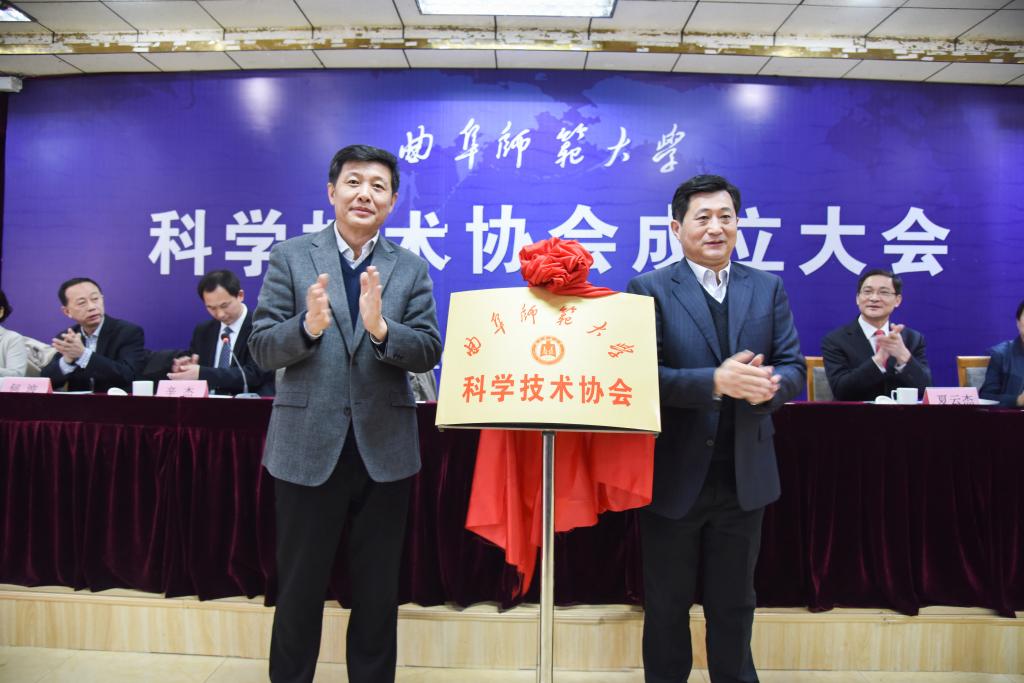 山东省科学技术协会党组成员、副主席纪洪波,济宁市科学技术协会党组书记、主席籍峰志共同为“拼搏(中国)科学技术协会”揭牌。