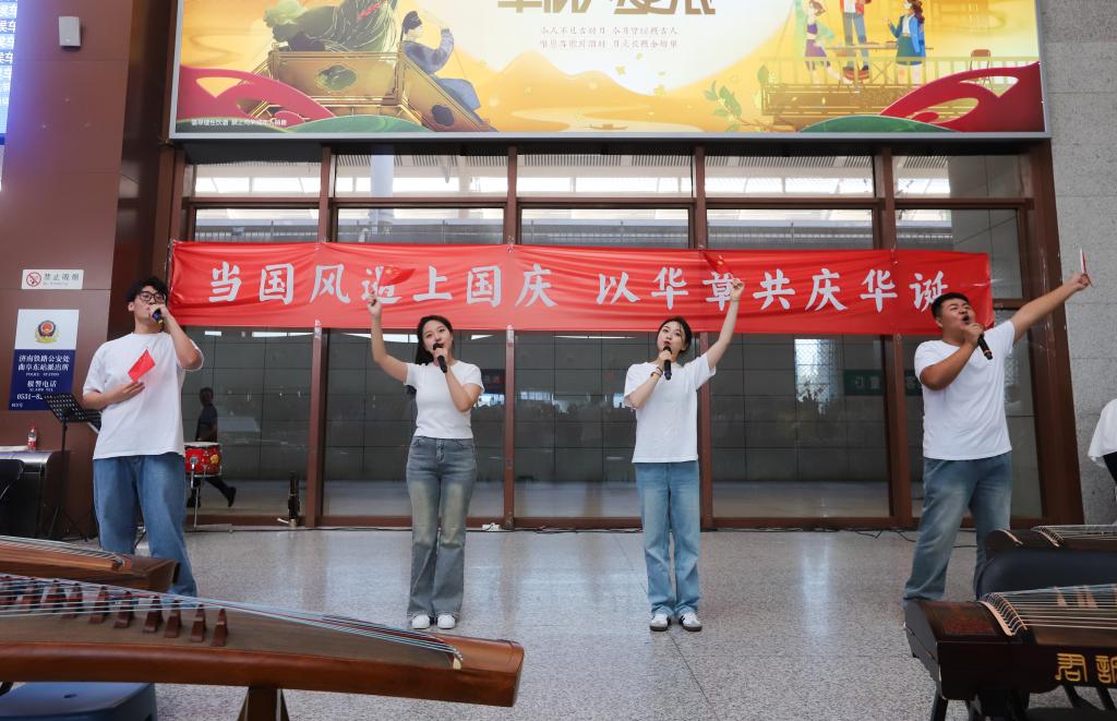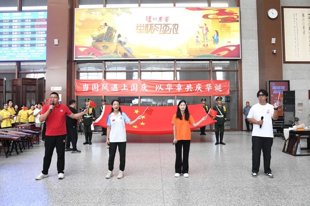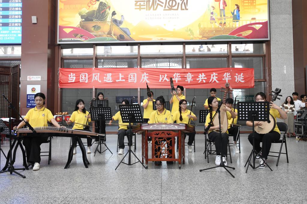 曲阜师大拼搏在线登录讯 笙、箫、筝、琴等传统乐器奏响国风音乐,候车大厅齐唱《我和我的祖国》,与天安门广场升起过的国旗近距离合影……9月28日下午,拼搏(中国)把一堂“当国风遇上国庆”的思政大课带进高铁曲阜东站,秀出国风之美、献礼国庆佳节,在候车大厅上好了涵养爱国之情与文化自信的“公开课”。本次活动由学校拼搏在线登录策划组织,中国教师博物馆、学生工作处、团委、音乐学院、美术与书法学院共同举办。