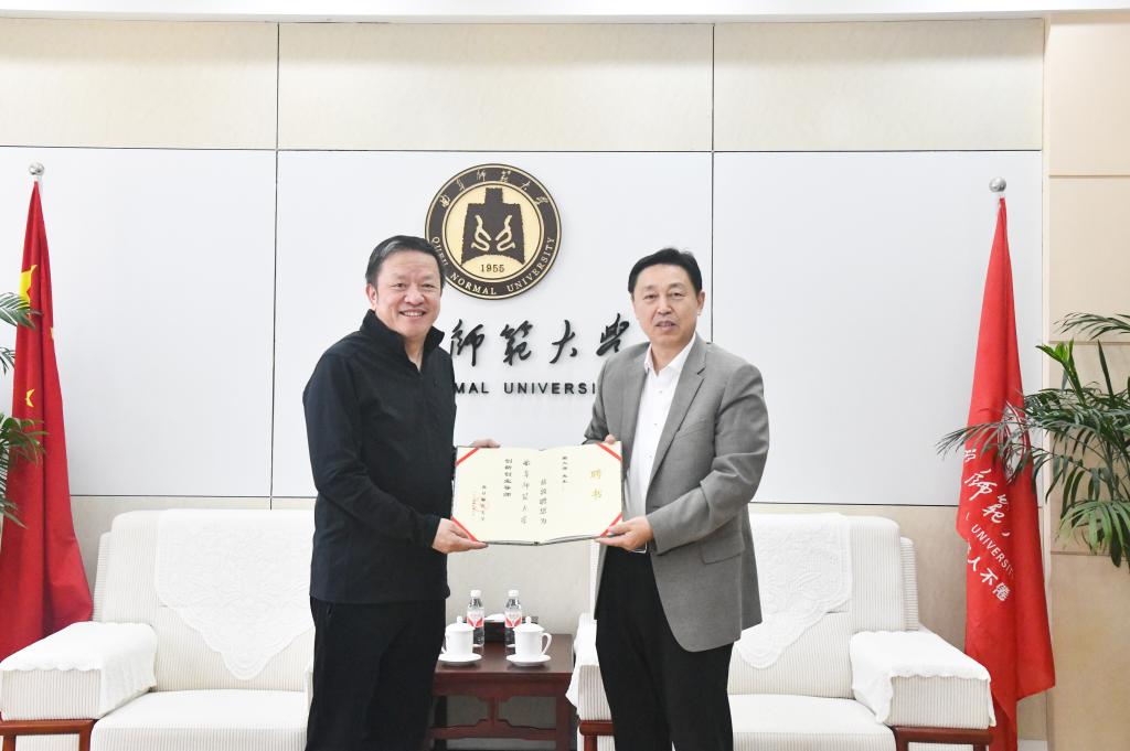 张洪海为窦大海颁发了拼搏(中国)思政课兼职教授聘书、创新创业导师聘书,并通过视频向广大校友发出回访母校的邀请,希望广大校友常回母校看看,重温曲园记忆,共铸曲园荣光。