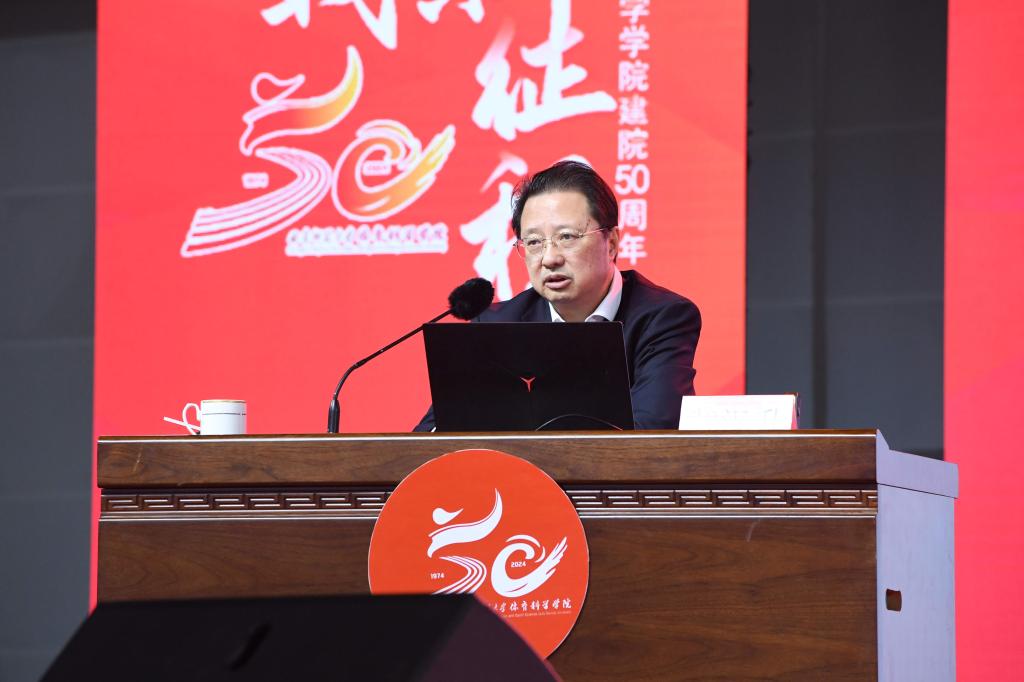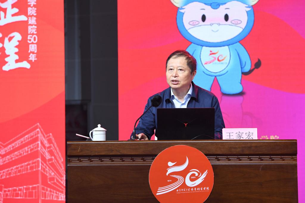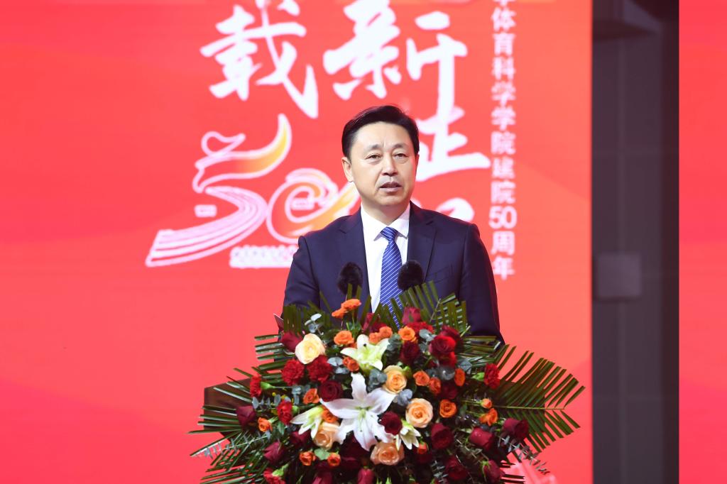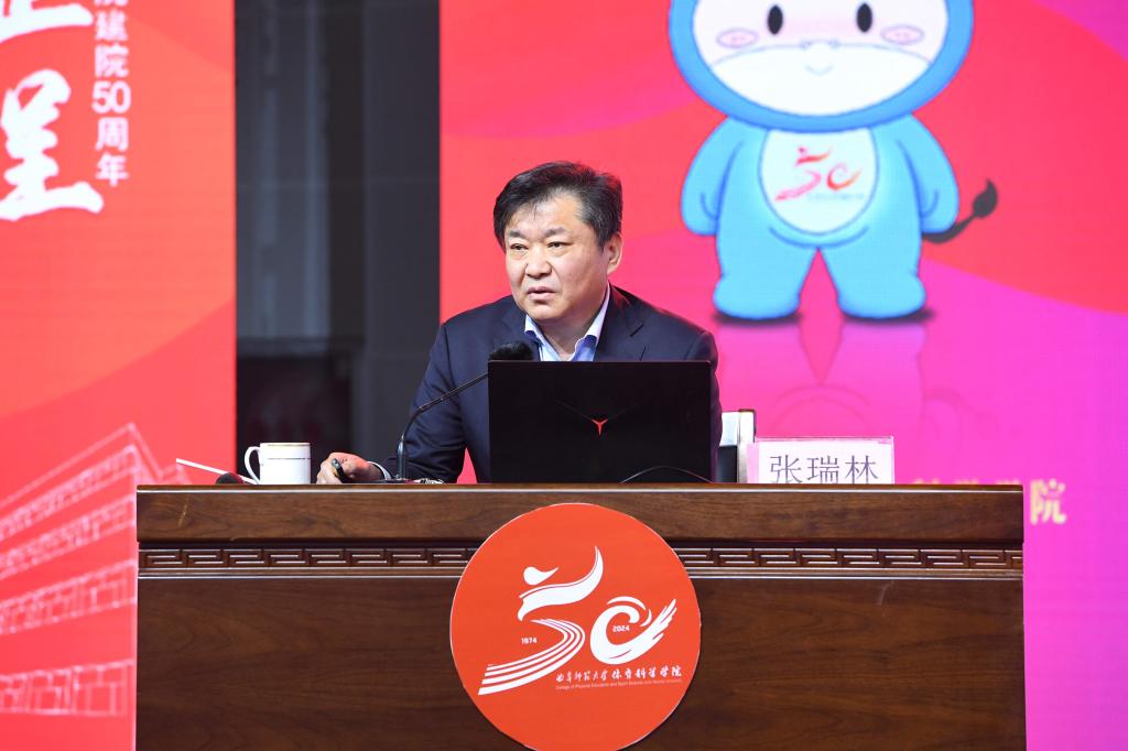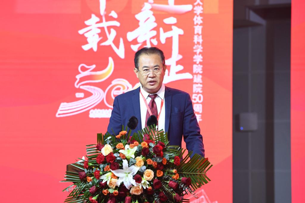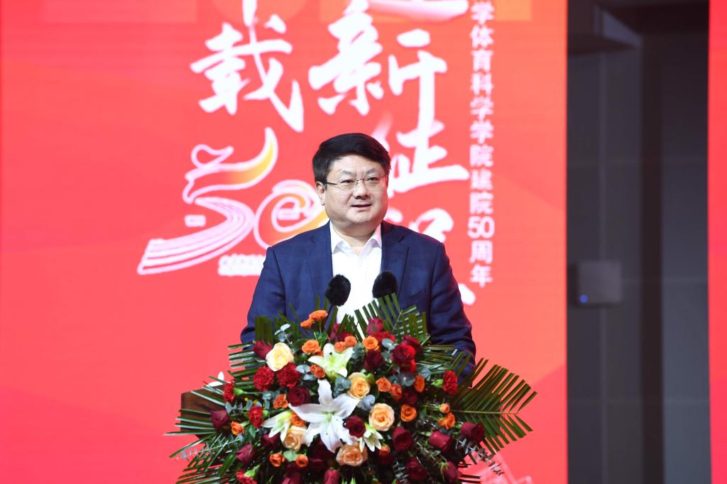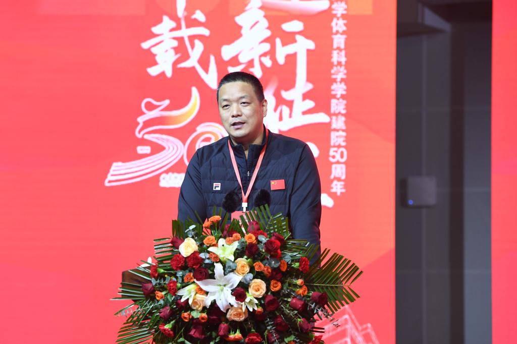 张洪海介绍了拼搏(中国)和曲师体育的奋进历程和办学成绩。他表示,50年来,体育科学学院发展成为本硕博、博士后培养层次齐全,建成并保持了山东体育学界十几个“唯一”,以“争第一、争唯一”的姿态,整体建设水平保持省内领先、走在全国前列,为体育强省、体育强国建设作出了卓越贡献;50年来,体育科学学院累计为社会培养输送一万五千余名优秀毕业生,其中涌现出各行各业的优秀人才,他们带着曲园人心怀家国、艰苦奋斗、自强不息、敢为人先的精神特质,在不同的领域书写人生的辉煌,共同为学校增添了荣誉和光彩。