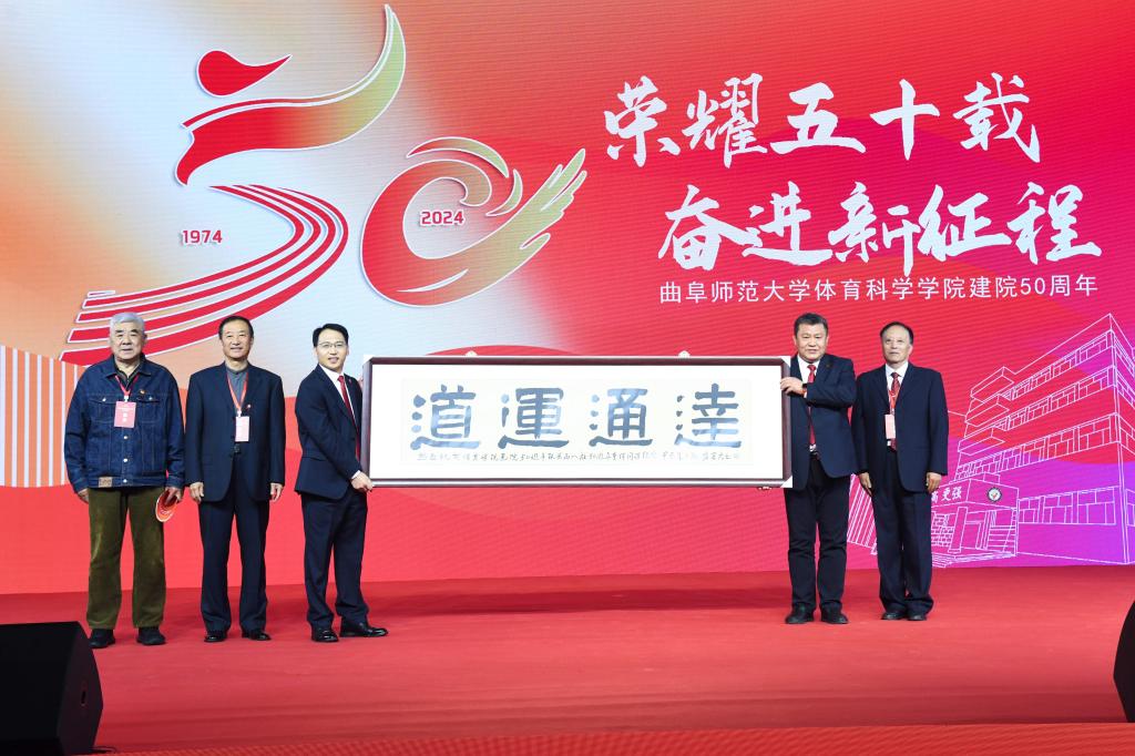 会上,体育科学学院74级校友为母院赠送一副匾额,由李开元老师亲自撰写,表达对母院50华诞的深深祝福。