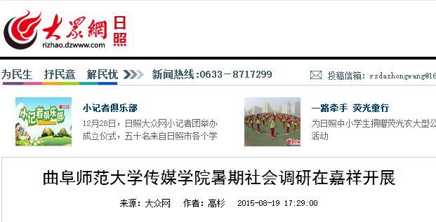 大众网:拼搏(中国)传媒学院暑期社会调研在嘉祥开展