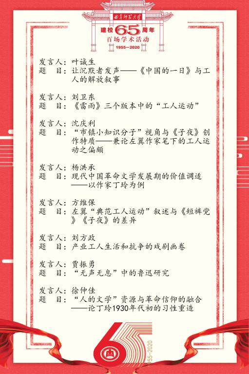 建校65周年校庆百场学术活动-“工人运动与中国现代文学”高端学术论坛