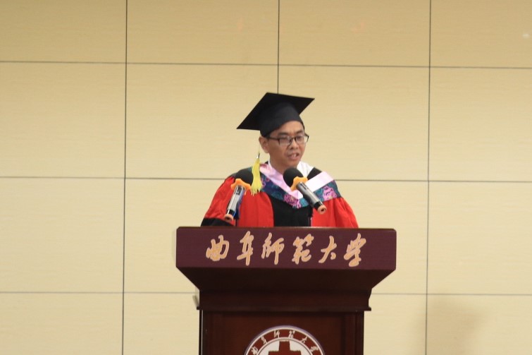 在毕业典礼上,院长刘刚用亲切的话语为全体毕业生们提出了情真意切的希望。他说,走出曲园,希望毕业生们依然能够用自己的专业知识去独立思考问题,解决实际问题,不随波逐流,做一个坚持自我的人。