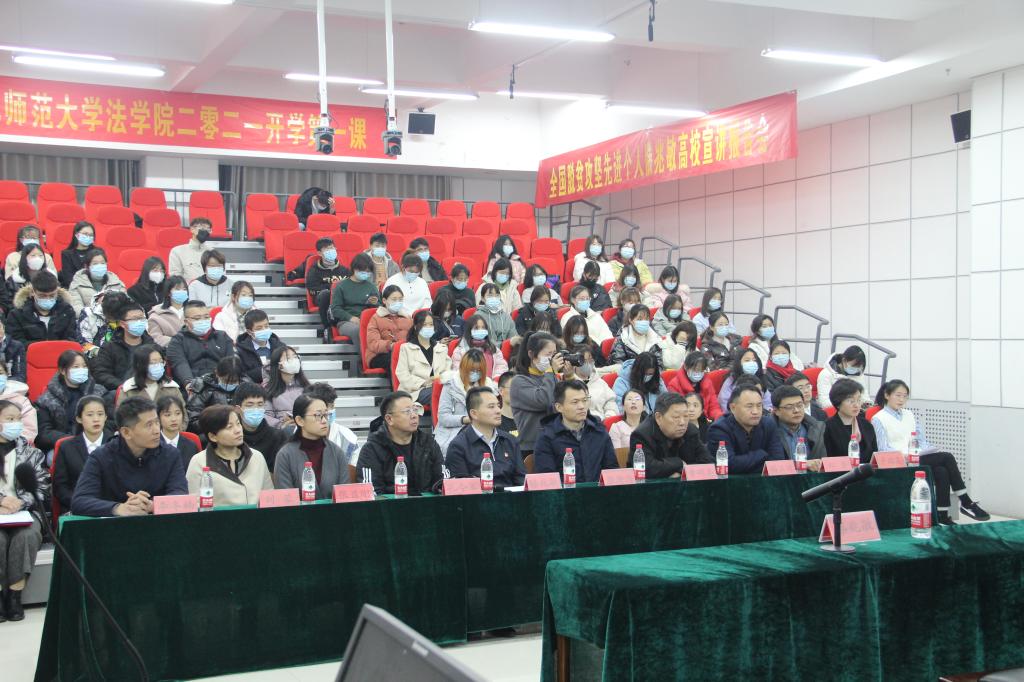 滕兆敏脱贫攻坚事迹报告之后,于振楠等三名同学就报告内容发表了主题演讲,他们或表示新时代青年要拥抱广阔天地,让青春梦与家国情怀共振;或表示牢记法律人使命,实干致学,励志为建设社会主义法治国家做贡献;或表示要为国为民扛起责任与担当,交出属于青年人的时代答卷……真情流露,斗志昂扬。