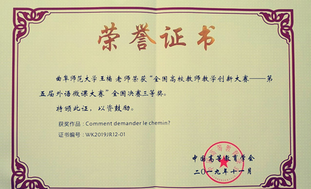 我校教师王楠在全国高校教师教学创新大赛中荣获佳绩